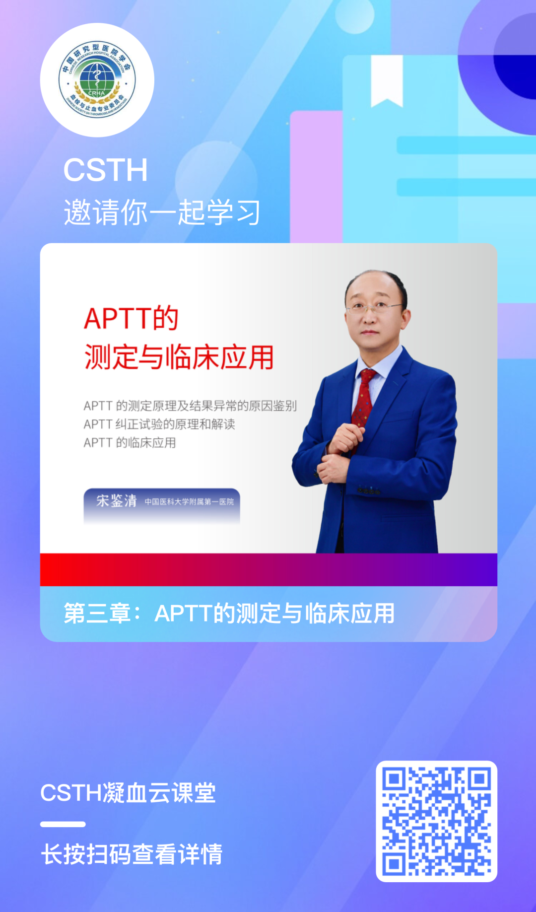 凝血云課堂是中國研究型醫(yī)院學會血栓與止血專業(yè)委員會打造的學習平臺。CSTH凝血云課堂集結(jié)了國內(nèi)眾多優(yōu)秀的凝血專家學者,系統(tǒng)地針對血栓與止血實驗室相關(guān)檢測基礎(chǔ)理論、指標、指南共識、儀器操作、案例等等各方面為大家傳道解惑,利用網(wǎng)課開設(shè)一系列專業(yè)系統(tǒng)的凝血繼續(xù)教育課程,對大家完全免費,幫助大家系統(tǒng)的了解和學習這門學科。