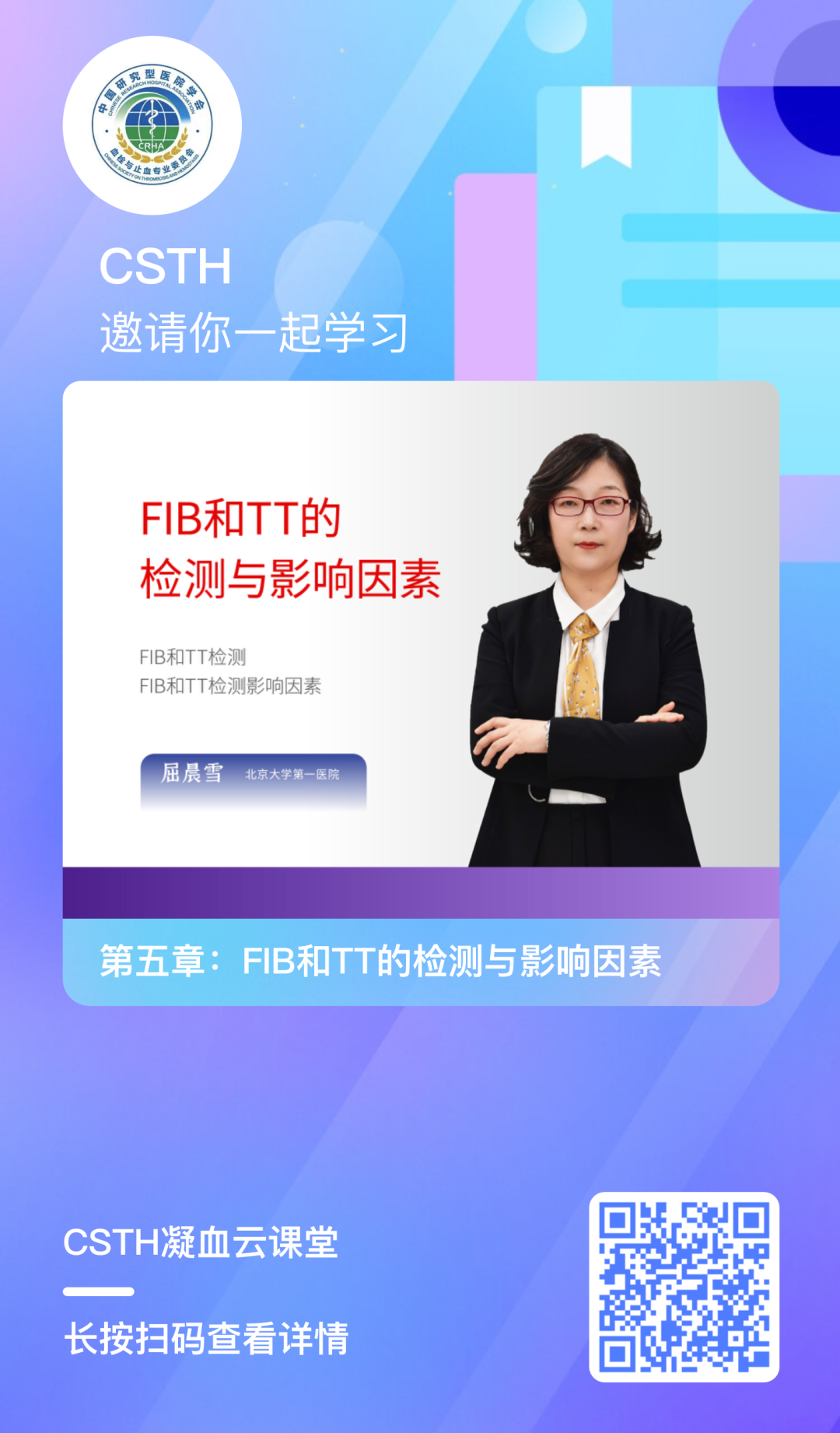 凝血云課堂是中國研究型醫(yī)院學(xué)會血栓與止血專業(yè)委員會打造的學(xué)習(xí)平臺。CSTH凝血云課堂集結(jié)了國內(nèi)眾多優(yōu)秀的凝血專家學(xué)者,系統(tǒng)地針對血栓與止血實驗室相關(guān)檢測基礎(chǔ)理論、指標(biāo)、指南共識、儀器操作、案例等等各方面為大家傳道解惑,利用網(wǎng)課開設(shè)一系列專業(yè)系統(tǒng)的凝血繼續(xù)教育課程,對大家完全免費(fèi),幫助大家系統(tǒng)的了解和學(xué)習(xí)這門學(xué)科。