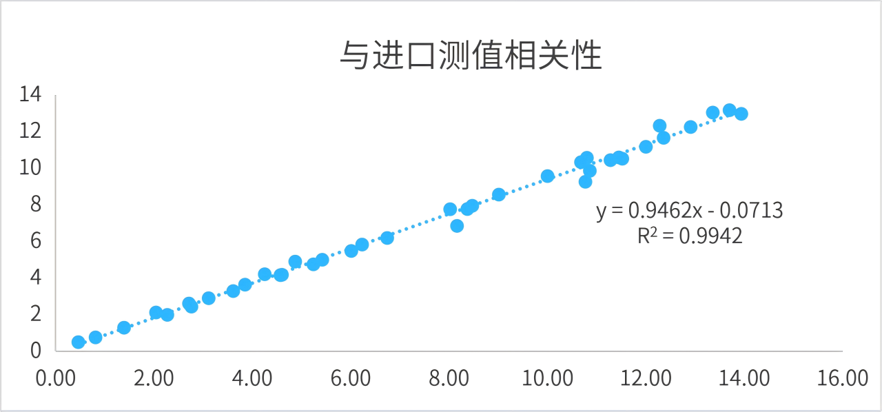 與進(jìn)口主流試劑測(cè)值相關(guān)性好,R2>0.99