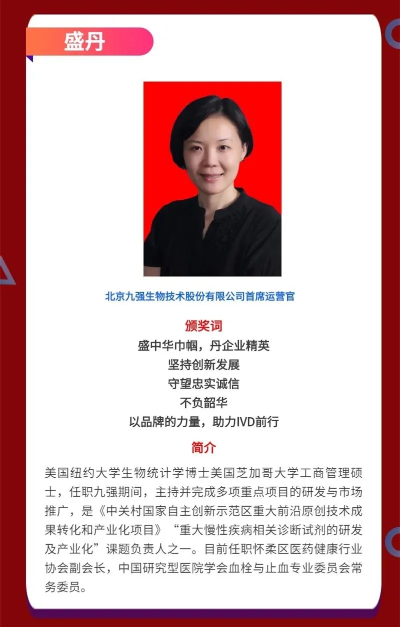 快訊|九強(qiáng)生物首席運(yùn)營(yíng)官盛丹女士榮獲2020年中國(guó)體外診斷產(chǎn)業(yè)領(lǐng)軍人物!