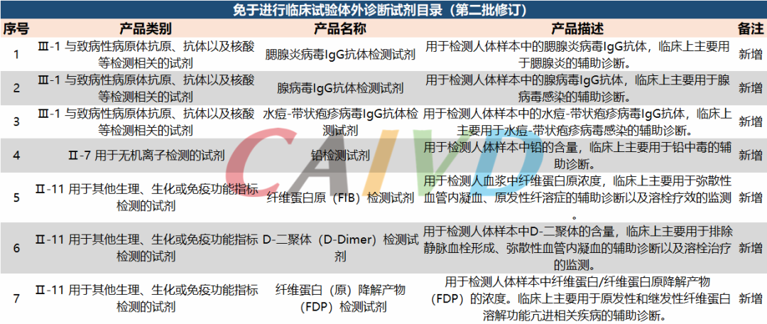 新增7項(xiàng)體外診斷項(xiàng)目進(jìn)入免臨床試驗(yàn)醫(yī)療器械目錄(第二批修訂)